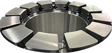 1.問題描述可傾瓦徑向軸承由多個(gè)能繞支點(diǎn)自適應(yīng)擺動(dòng)的徑向瓦塊組成(圖1),與轉(zhuǎn)子形成的動(dòng)壓油楔在